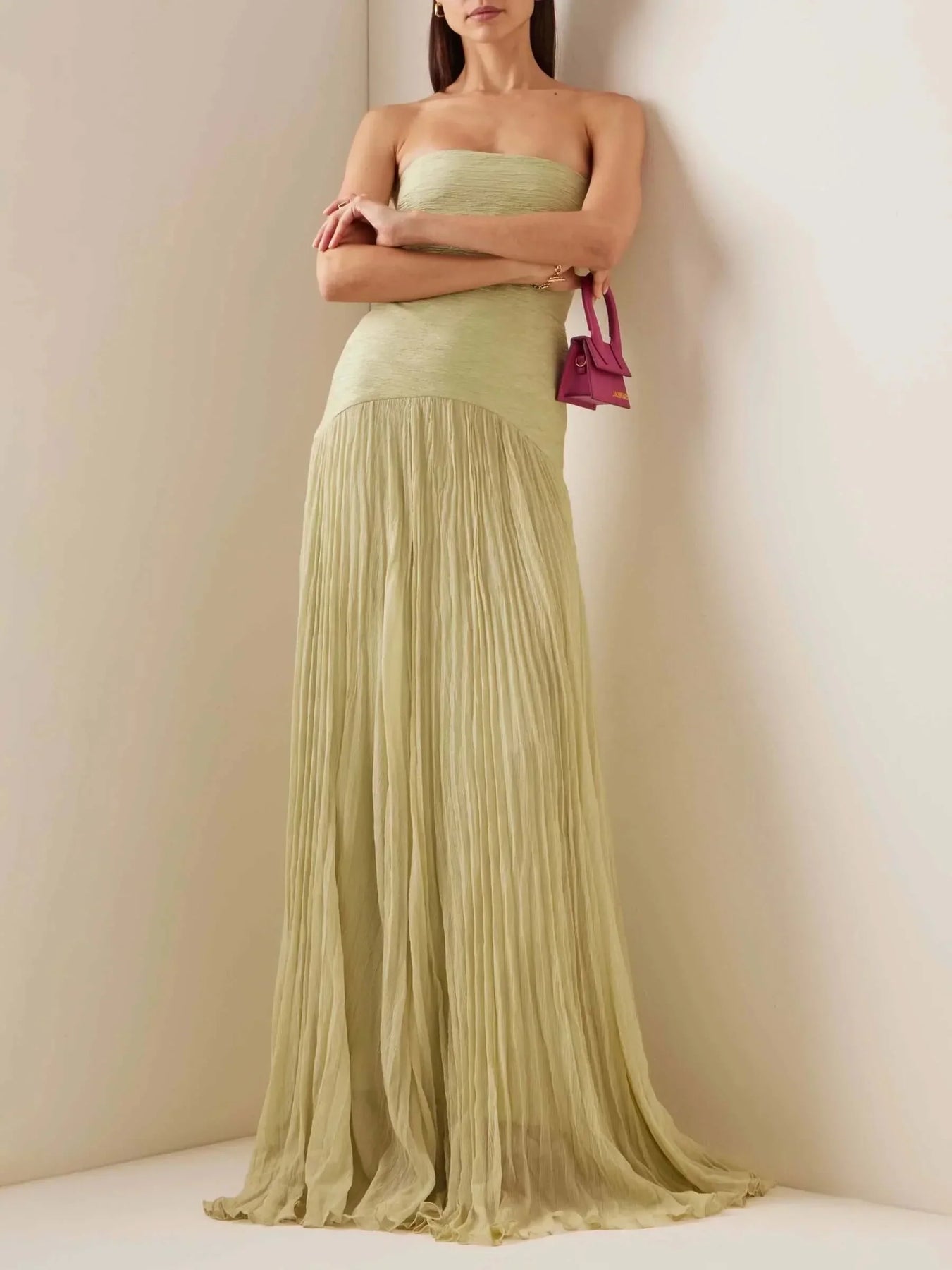 • Accordion pleated skirt — airy, graceful, and full of movement