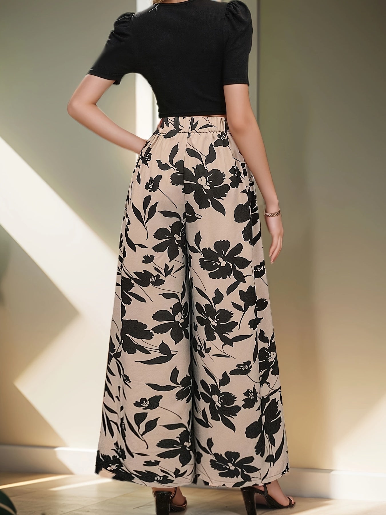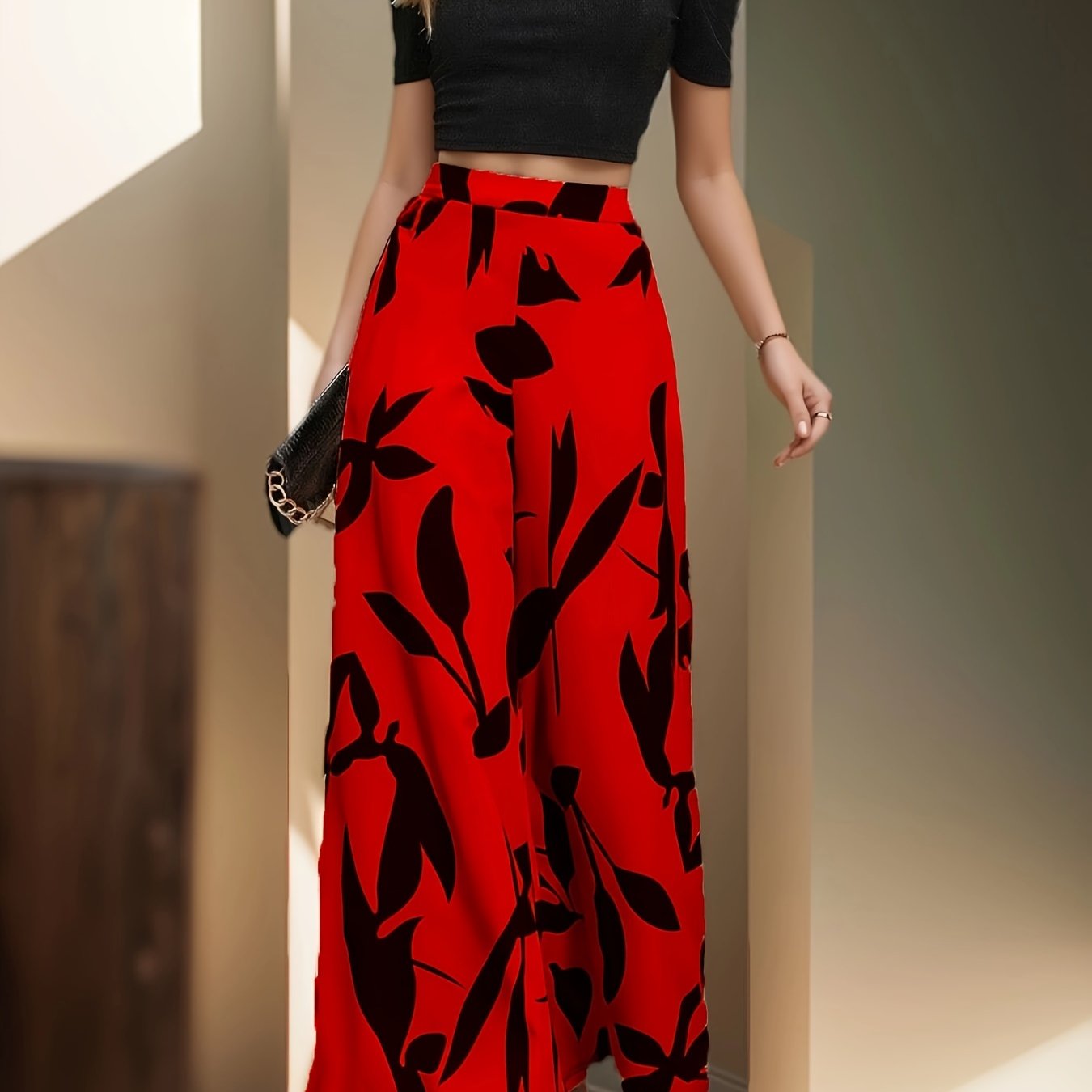 • Striking print trousers – Flowy wide-leg design with eye-catching detail.