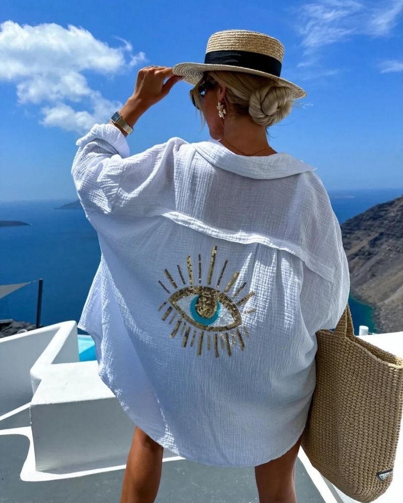 • Statement-Making Detail: The hand-beaded sequin eye design adds a bold, mystical charm to any outfit.