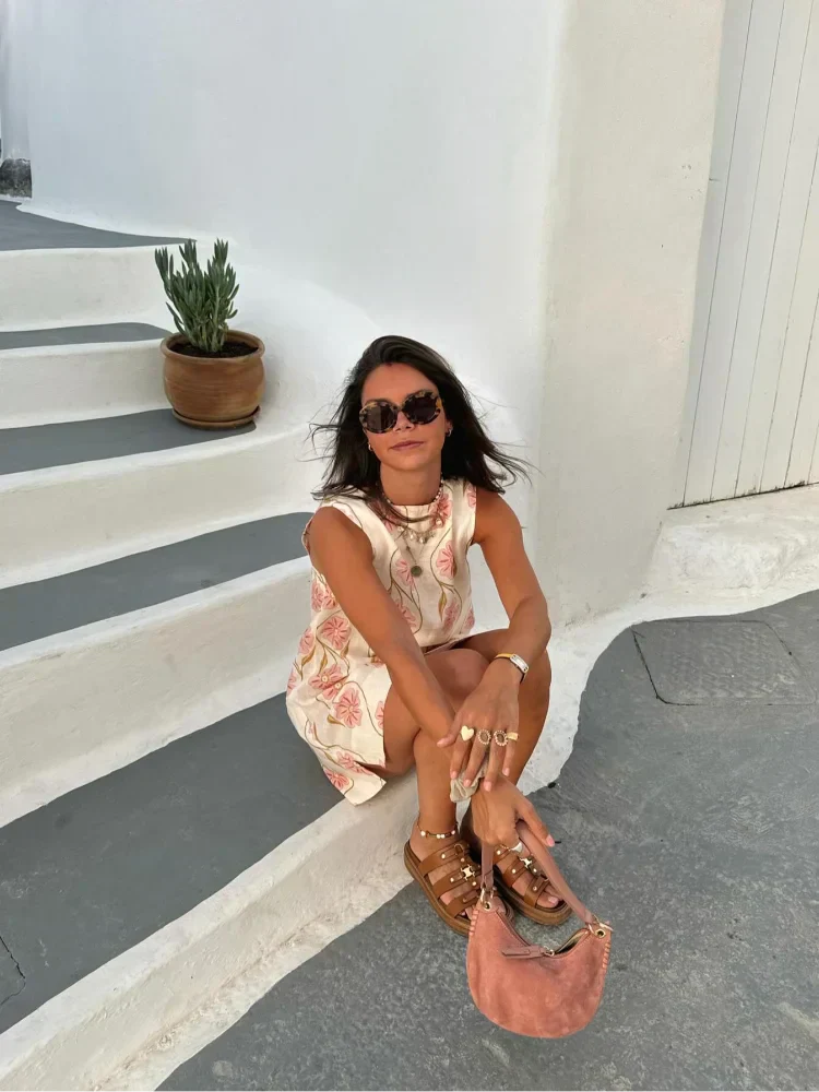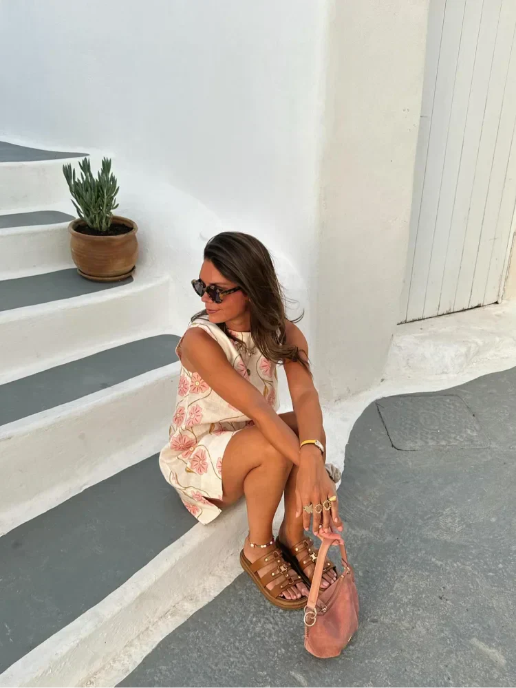 Discover the Anne Dress, a floral print side split mini dress perfect for summer. This women's fashion O-neck sleeveless short dress offers a casual yet elegant look, ideal for high streetwear. Add a touch of fashionable flair to your wardrobe with this versatile and trendy dress.